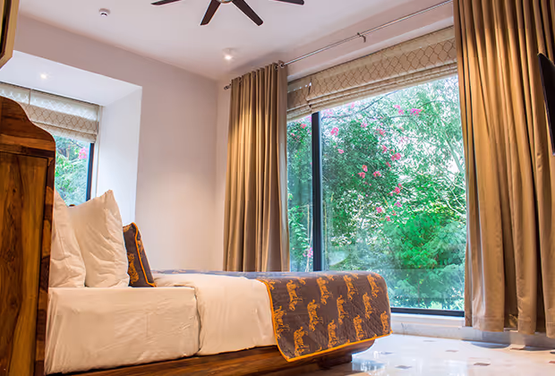 Indulge in the lavish comfort of our Premiere Nest Suites and embrace ultimate relaxation amidst the vibrant charm of the Pink City. These opulent suites, offering over 410 sq. ft. of space, set a new standard for luxury in Jaipur. Enjoy breathtaking city views through expansive windows, premium amenities, and refined decor, creating an ambiance of elegance. With features like a 52" LED TV, a stocked minibar, complimentary Wi-Fi, and dedicated service, these suites promise the pinnacle of luxury and comfort, offering the perfect retreat from the city's bustle.